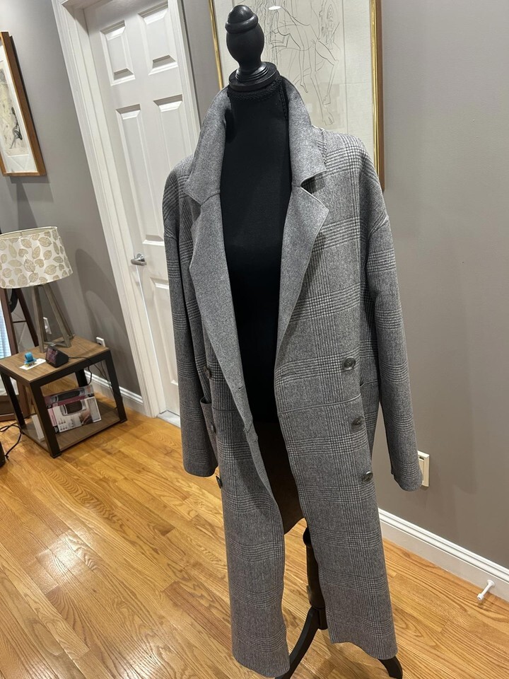TRINA TURK Gray Long Double-Breasted Wool Coat SZ LG