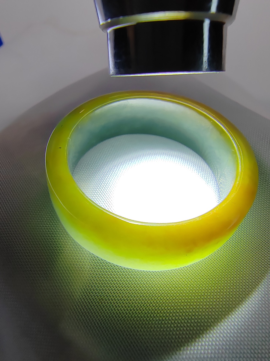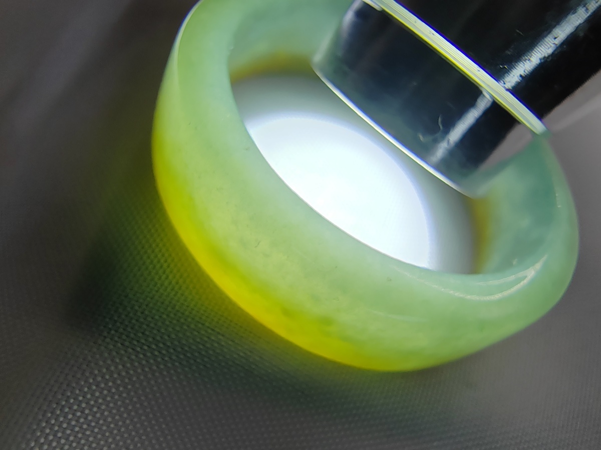Icy Bluish Yellow 100% Natural Jadeite Jade Band Ring (US Size - 16)