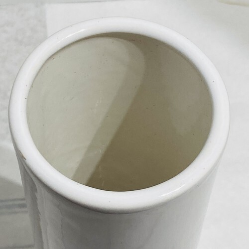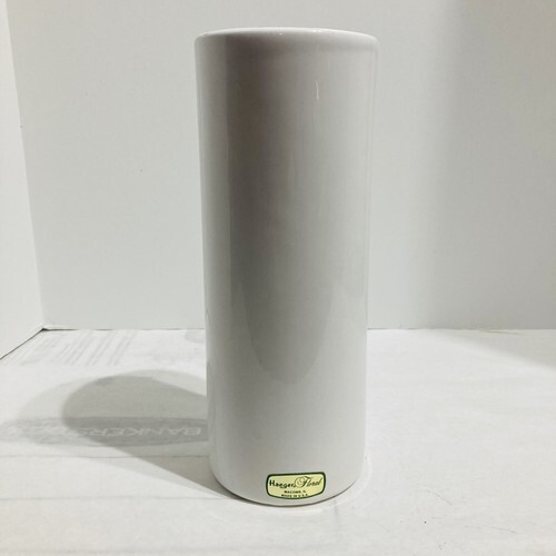Vtg Haeger Floral USA Mid Century MCM White 9?Cylindrical Ceramic Flower Vase. New old stock with original stickers. No visible flaws.