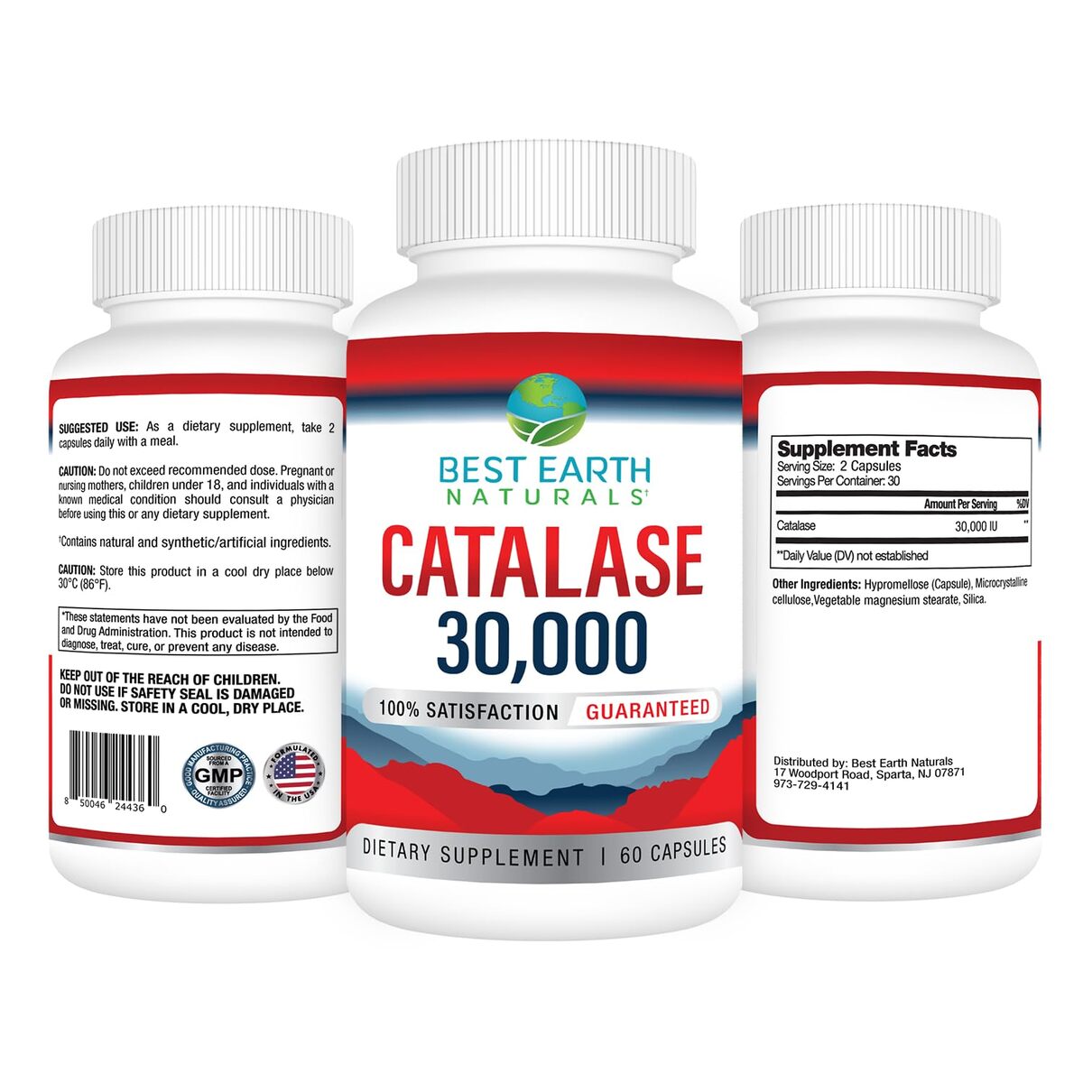 Catalase is a vitamin supplement with a potent 30,000 units of Catalase enzyme, formulated to help your body restore Catalase levels that naturally diminish with aging.,Hair Vitality Boost: Catalase supplements help to support hair's vibrancy and natural color.,Enhancing Overall Well-being: Catalase 30,000, featuring the most potent catalase concentration available, which can help foster your body's total health and vitality.,For Everyone: Catalase 30,000 is designed for anyone who wants to rock strong, healthy hair. No gender bias here!,Uncompromising Quality: Best Earth Naturals remains dedicated to providing top-tier vitamins and supplements, intended to ensure your body receives the essential nutrients it requires for peak performance.