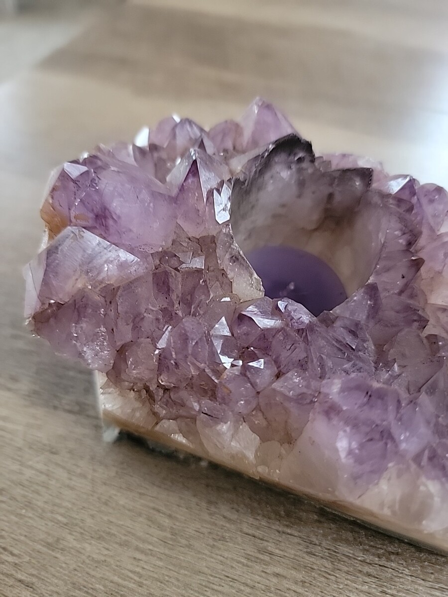 Amethyst Geode Cluster Tea Candle Holder Purple 1 1/2" Center Votive 6 3/4" Long
