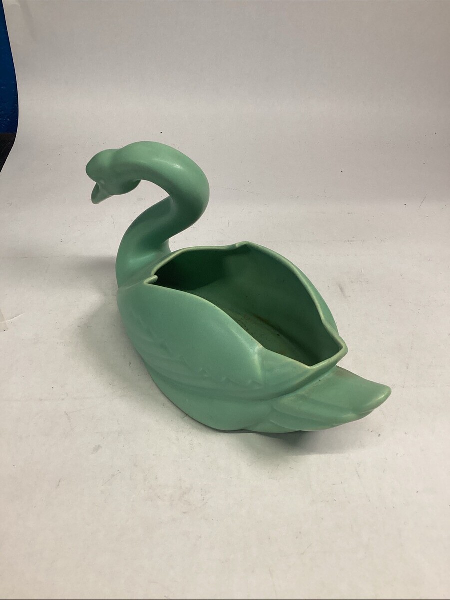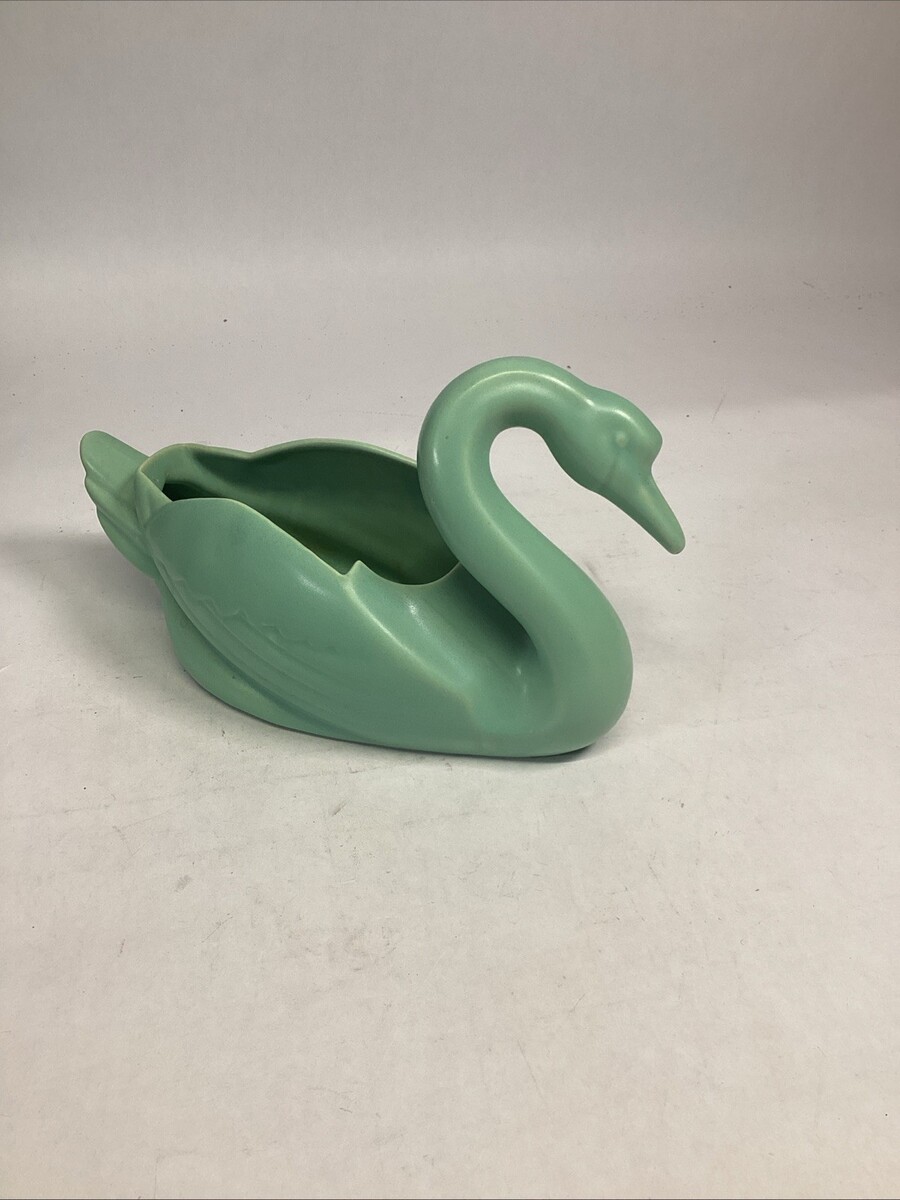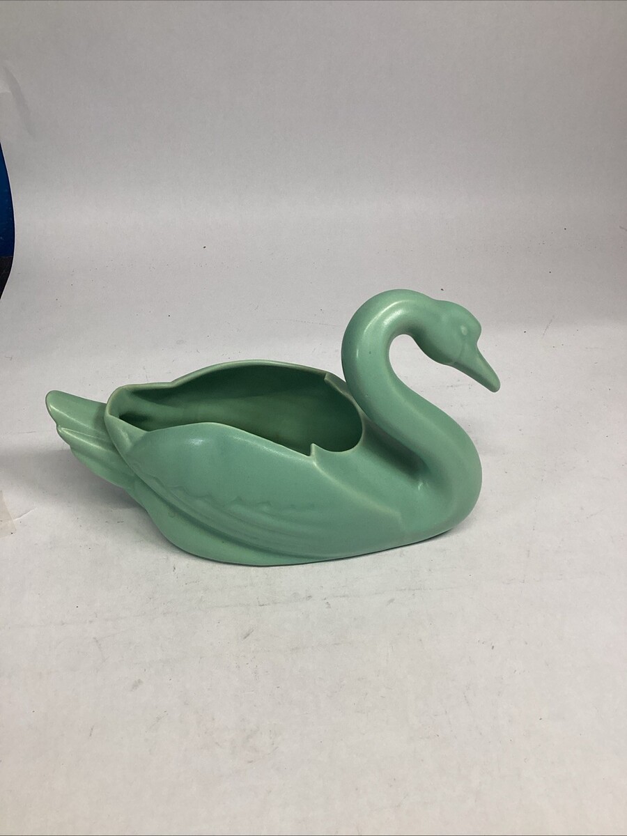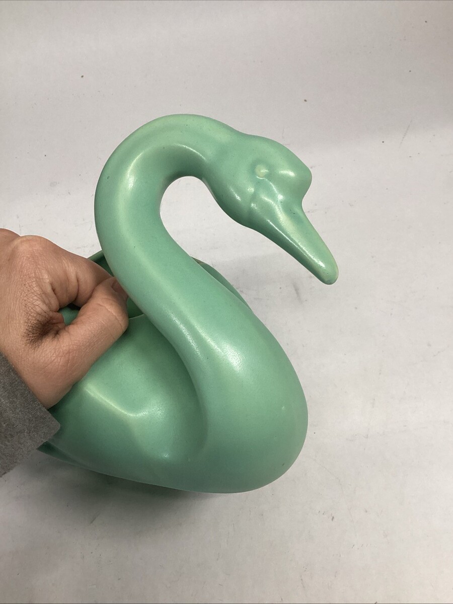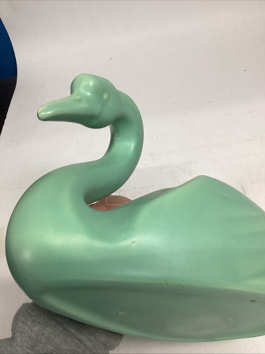 Vintage Bauer Pottery USA Large Seafoam Green Swan Planter Vase - 11.5?Lx5?Wx6.5?H. In good condition.