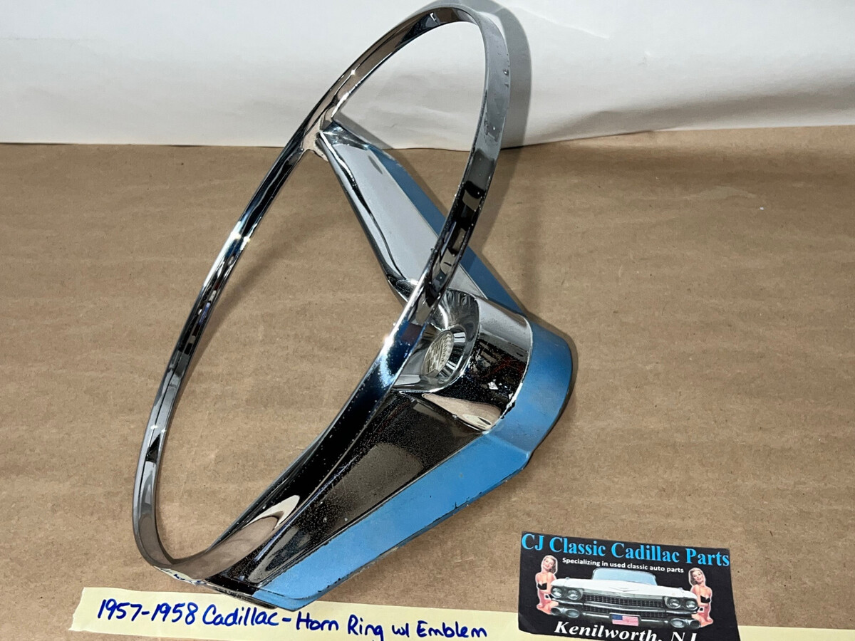 OEM 1957-1958 CADILLAC STEERING WHEEL HORN RING WITH EMBLEM & SPRING CONTACT