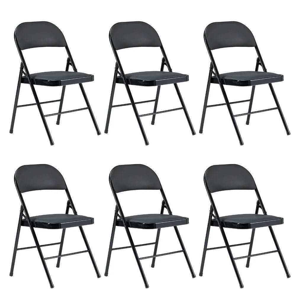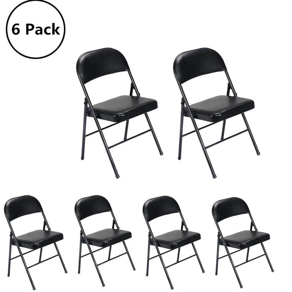 6 Pack Folding Chairs Cushioned Padded Seat for Party Black