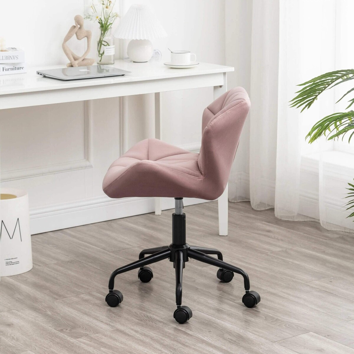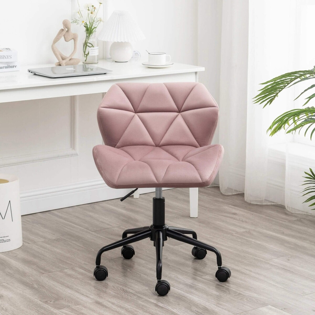 Introducing the Eldon Diamond Tufted Adjustable Swivel Office Chair, Mauve?the perfect blend of elegance and functionality that will elevate your workspace. This exquisite chair is upholstered in luxurious velvet, offering not only a stunning visual appeal but also unparalleled comfort thanks to its high-density foam cushioning. Key Features of the Eldon Diamond Tufted Adjustable Swivel Office Chair, Mauve include: Stylish Design: The diamond tufted backrest adds a touch of sophistication, making it an eye-catching addition to any office or home decor. Adjustable Height: Effortlessly customize your seating position with a pneumatic gas lift that allows for a height adjustment from 20 to 23.6 inches. 360-Degree Swivel: Enjoy smooth, unrestricted movement with a full swivel capability that enhances your multitasking efficiency. Sturdy Construction: Built on a durable black metal base with dual-wheel casters, this chair ensures stability while providing easy mobility wherever you need it. Perfect Dimensions: With measurements of 20.5 inches in width and depth, this chair fits seamlessly into various office spaces without sacrificing style. Whether you?re working from home or in a corporate environment, the Eldon Diamond Tufted Adjustable Swivel Office Chair, Mauve combines chic aesthetics with essential ergonomic features. Its delightful mauve hue is sure to impress clients and colleagues alike, ensuring that you remain stylish and comfortable during long hours at your desk. Don?t miss out on the opportunity to transform your office experience. Order your Eldon Diamond Tufted Adjustable Swivel Office Chair, Mauve today and embrace the perfect fusion of comfort and elegance!