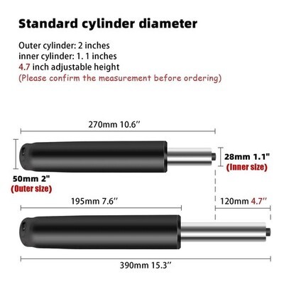 Transform your office experience with the 5.5-Inch Heavy-Duty Gas Lift Cylinder for Office Chairs - Universal Replacement Part for Most Chairs, Durable Hydraulic/Pneumatic Piston in Black. This meticulously crafted gas lift cylinder not only serves as a reliable replacement but also enhances your seating comfort and functionality! Why Choose Our Gas Lift Cylinder? Heavy-Duty Construction: Engineered to support up to 1000 lbs, this cylinder is made from high-quality thickened stainless steel for long-lasting durability. Exceptional Performance: Enjoy smooth and silent 360-degree rotation, allowing effortless turning and reclining without disturbing your colleagues. Universal Compatibility: This gas lift cylinder is designed to fit most office chairs, including executive chairs, salon chairs, and rolling stools. Safe Reliable: Certified by SGS and BIFMA, the explosion-proof design ensures safety and peace of mind in your workspace. Easy Installation: With a simple one-time forming circlip, you can install the cylinder in just minutes?making it a hassle-free upgrade! Product Specifications: Adjustable Height: Fully compressed height of 11.4 IN and fully extended height of 16.9 IN with a 5.5 IN adjustable range. Standard Diameter: Compatible with standard chair fittings. Quiet Operation: Designed to minimize noise, contributing to a peaceful work environment. 360-Degree Rotation: Move effortlessly in any direction without noise or hassle. Revitalize your office seating with the 5.5-Inch Heavy-Duty Gas Lift Cylinder for Office Chairs - Universal Replacement Part for Most Chairs, Durable Hydraulic/Pneumatic Piston in Black, where comfort meets quality. Don?t settle for less; enhance your workspace experience today!