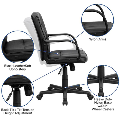 Mid Back Black LeatherSoft Swivel Task Chair With Arms