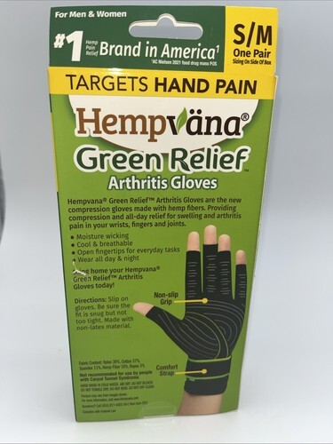 Hempvana Green Relief Arthritis Gloves Size S/M New