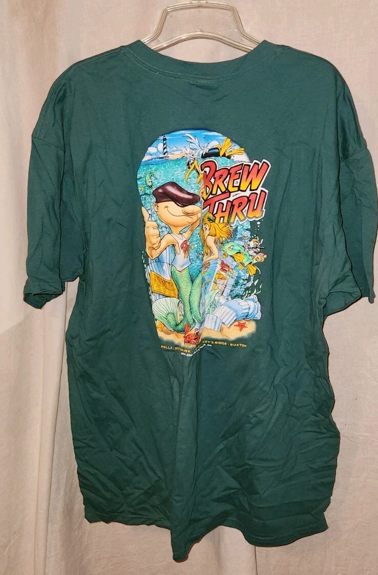 VTG Anvil 2x Brew Thru Branash Antlantis 2000 TShirt Mermaids Outer Banks NC
