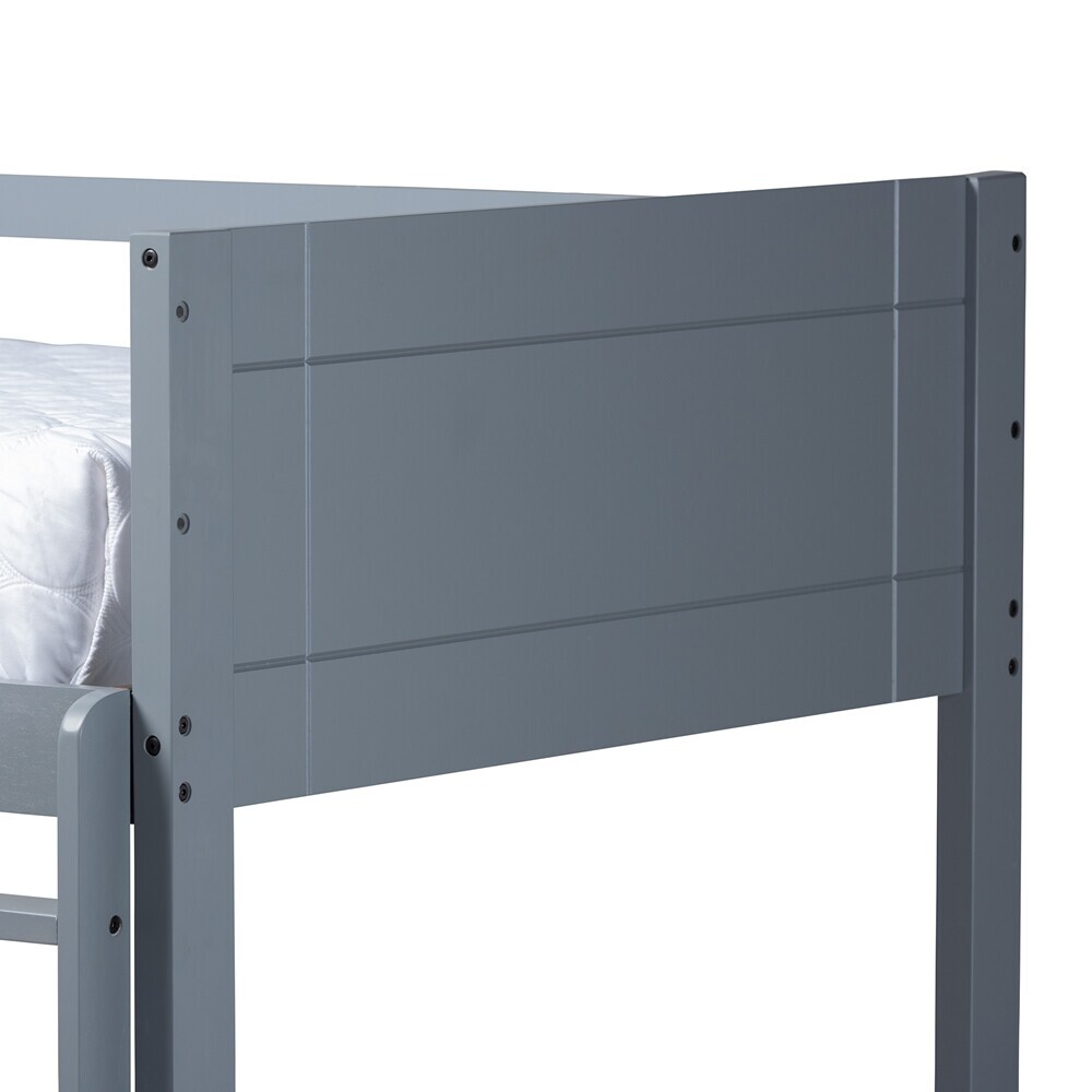 Designed with the utmost safety in mind, this bunk is equipped with a fixed ladder, as well as sturdy guard rails on the top bunk. The headboards and footboards are engraved with clean lines for a simple, modern look. Built for use with two standard twin size mattresses, this is a convenient bed solution for smaller spaces. This bunk bed requires assembly.
