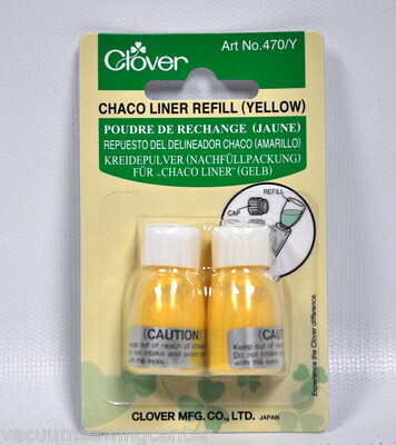 Clover Chaco Liner Chalk Refill Yellow Refill for Clover Chaco Liners. Easy to use. Screw on cap. Easy refills for the Chaco liner. Refill for CHK-469CV-YLW. Net Weight (1 pc.): about 2.8 g. 2 Refills in pack. Art No. 470/Y CHK-470CV-YEL