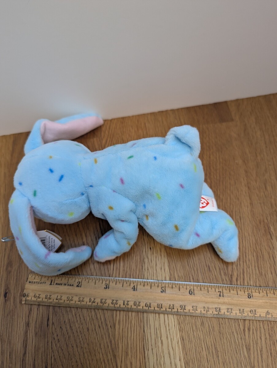 Ty Beanie Baby Bellies Blue Plush Bunny Rabbit Bluford colorful sprinkles READ