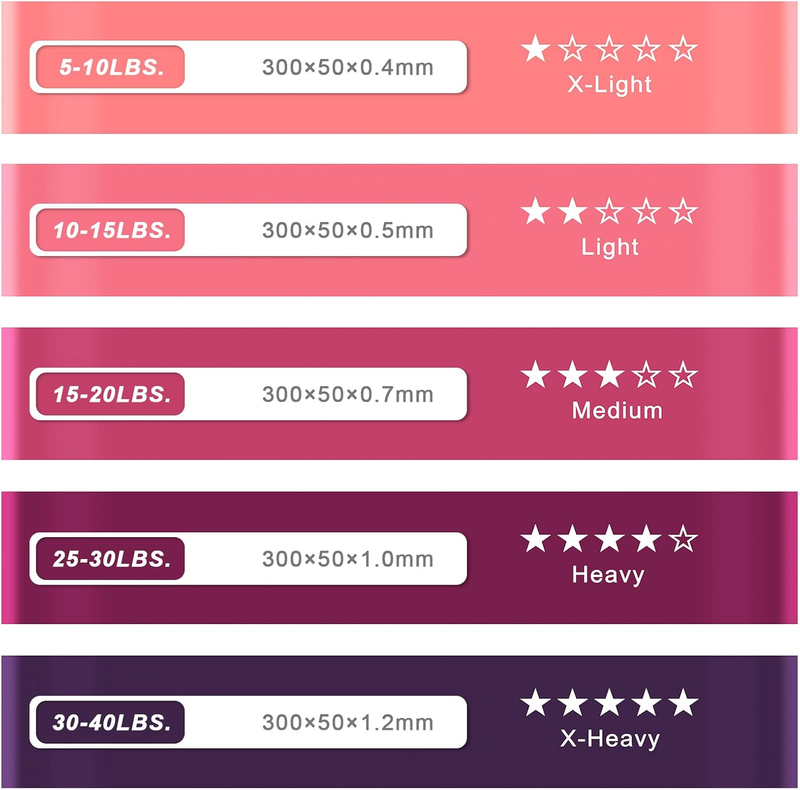 ?5 Resistance Levels? Resistance bands with 5 different levels of resistance. Can be used by all family members or to reach different training goals.