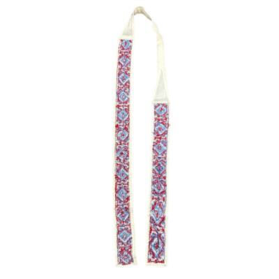 Antique Handmade Needlepoint Scandinavian Nordic Scarf RWB Trim 46" x 1 1/2"