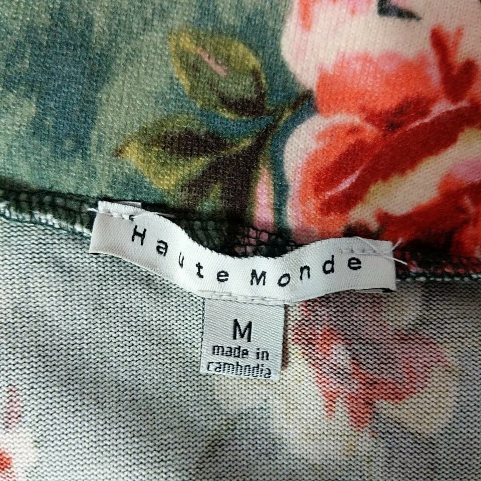 Haute Monde Sheath Dress Medium Green Orange Floral Ruffles Short Sleeve