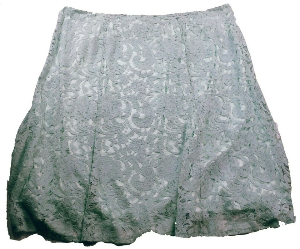 NWT Roz & Ali Women's A Line Skirt Size 22 Blue Floral Lace Side Zip