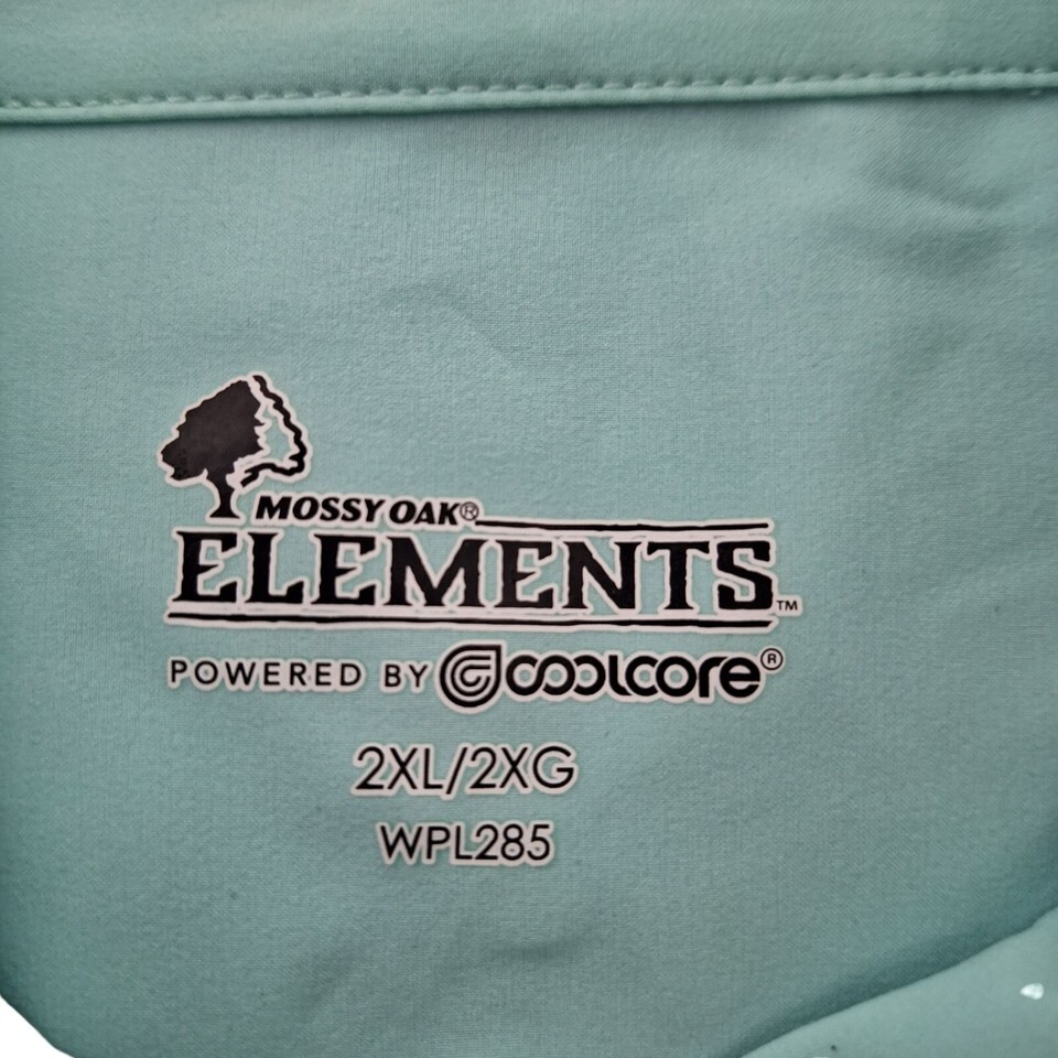 Mossy Oak Elements Men's Button Up Fishing Shirt 2XL Solid Blue Coolcore