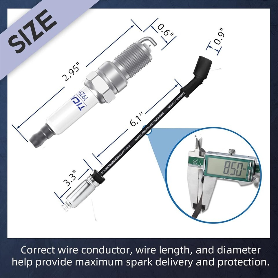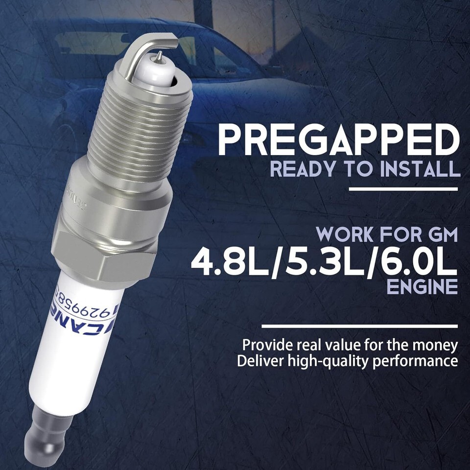 ?Compatible Vehicles?41-962 spark plug compatible with chevy vehicles: Silverado 1500, 2500, 3500, 1500 HD, 2500 HD; Suburban 1500, 2500 ,1500 Classic, 2500 Classic, 3500 Classic, 2500 HD Classic; Tahoe; Avalanche, Avalanche 1500; Express 1500, 2500, 3500; Camaro ; Colorado; Spark plugs compatible with GMC Yukon, Yukon XL 1500, Yukon XL 2500; Savana 1500, Savana 2500; Sierra 1500, 2500, 3500, 1500 Classic, 2500 Classic, 3500 Classic, 2500 HD, 3500 HD ?Spark Plugs Replacements 41-962?Spark plug OE: 19299585, 41 962, spark plug wires OEM number: 9748HH, 88862385. Direct replacement, plug n play, saving time and effort. It will help to improve the gas mileage of your vehicle and deliver excellent performance for a long time. ?Excellent Durability 41 962? Kernel quenching one-piece integral suppressor seal that helps reduce radio frequency interference meters spark plug energy to help provide long electrode life and seals against compression leakage, Pure copper core results in cooler electrode temperature for maximized durability and fouling resistance ?Long Lasting Time?these platinum spark plugs can provide up to 100000 miles of service before needing a replacement, dual platinum tip for improved resistance to spark erosion fouling and corrosive combustion chamber environment insulator that improves the plug to boot seal platinum center electrode and platinum pad that lower the ignition demand voltage and reduce the possible flame ?24 MONTHS GUARANTEE?Exquisite workmanship, strict quality control, and excellent after-sales service, which is why our spark plug wire set is worth your purchase. We provide True and effective 24 months warranty, please buy it without worries