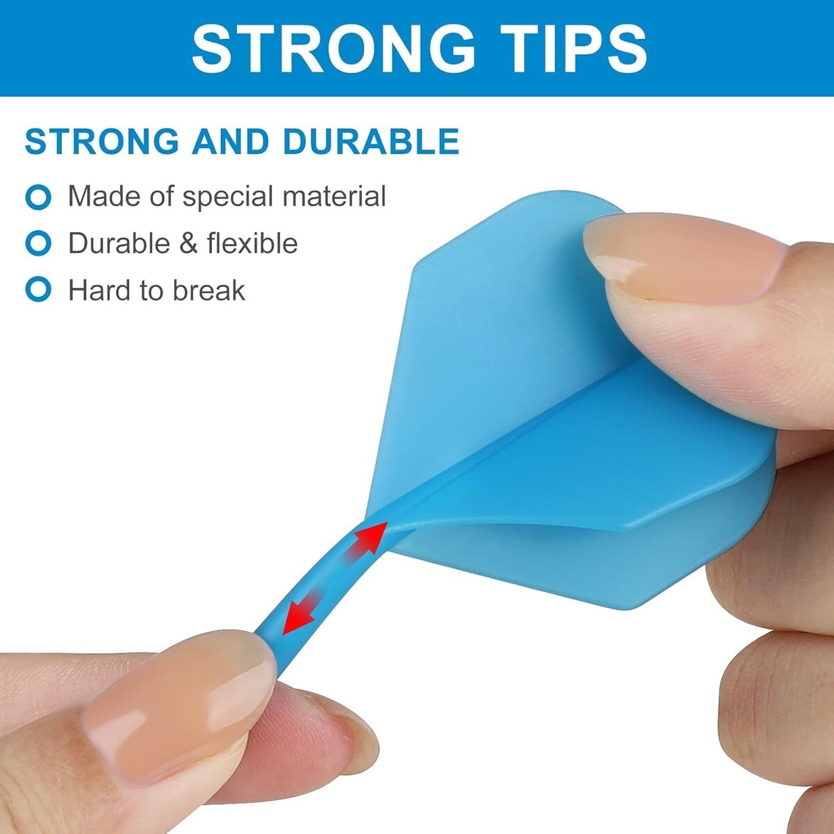 Made of special polypropylene, with the right softness and hardness. Compared to other traditional dart wings, they are more durable, less prone to tearing or deformation, and more durable.