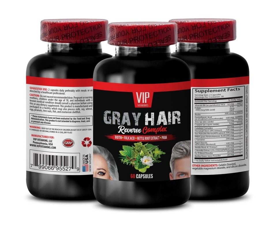 Introducing our Gray Hair Reverse Complex ? an advanced formula designed to address the natural process of graying hair. Packed with a powerful blend of essential nutrients, this supplement is carefully crafted to promote hair health and combat premature graying. Here's a closer look at the key ingredients and their benefits: