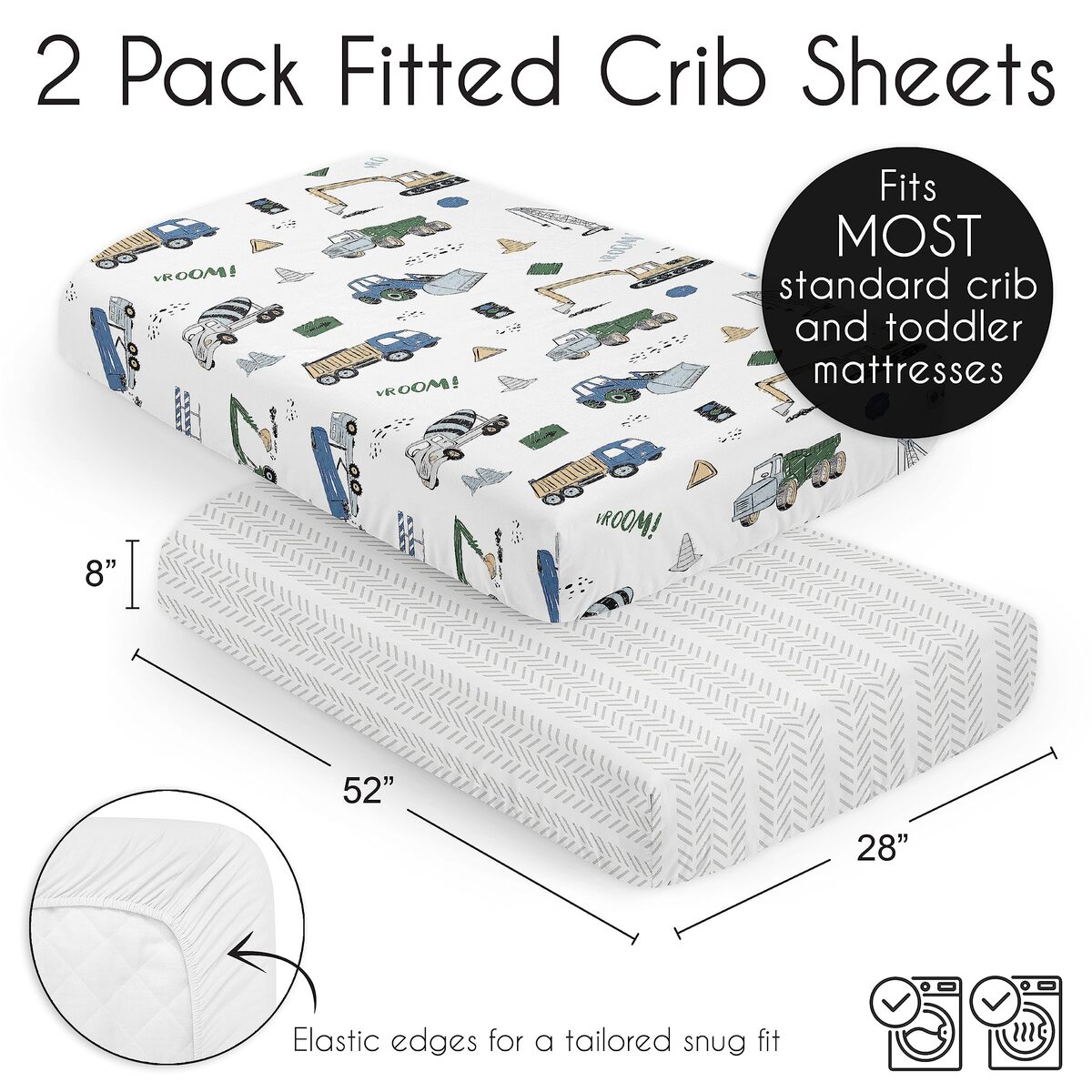 Sweet Jojo Designs Construction Truck Baby Crib Sheet Set - 2 Pack