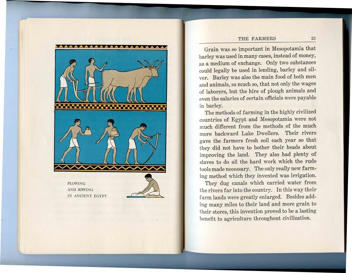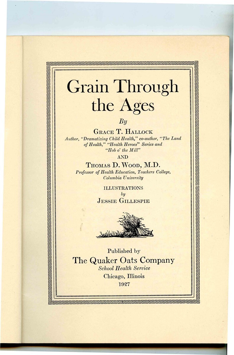 A 96 page card cover booklet. Grain Through The Ages, published by The Quaker Oats Company in 1927. By Grace T Hallock and Thomas D Wood MD, Illustrated by Jessie Gillespie.