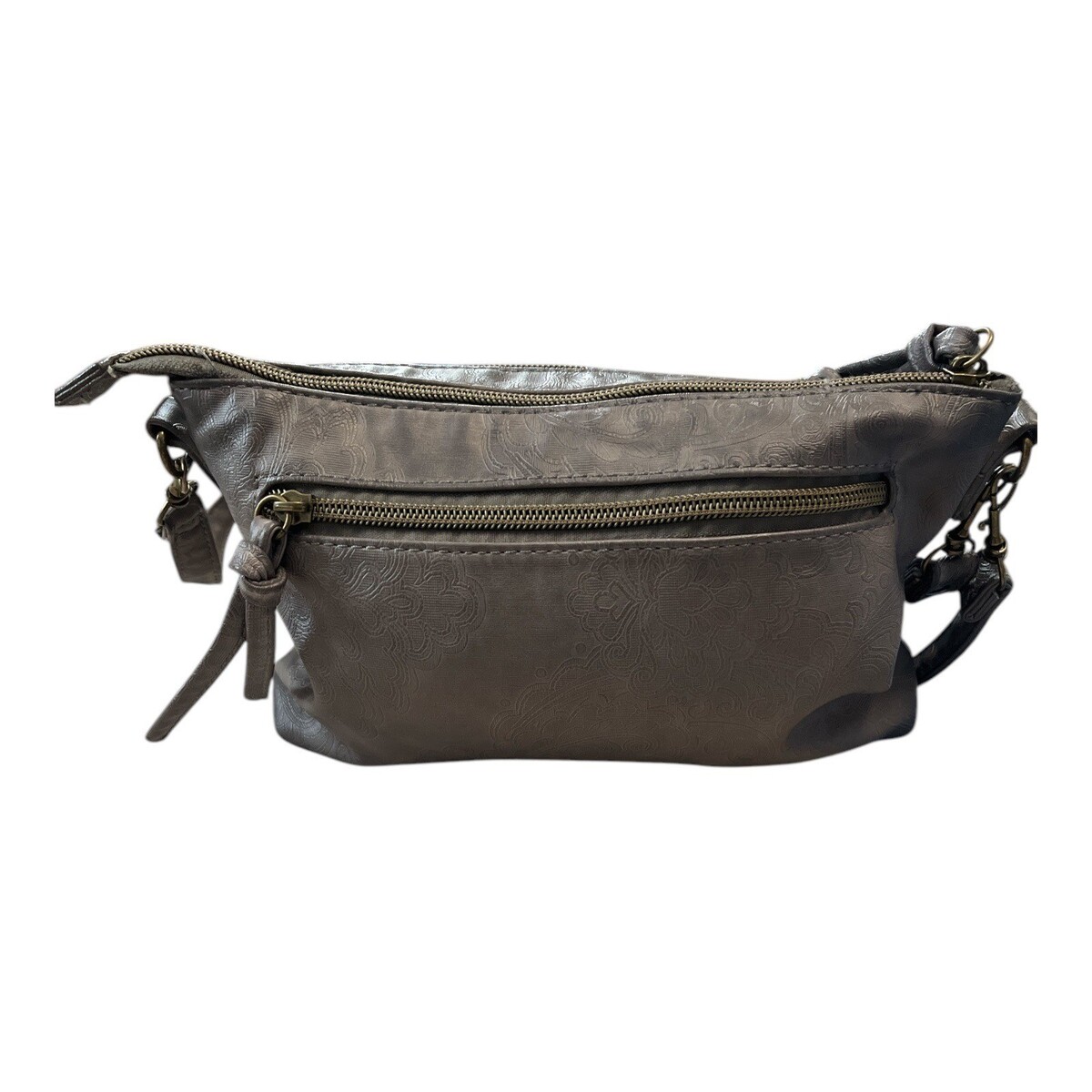 Stone Mountain USA Embossed Floral Crossbody Bag Gray Multi Zip Boho Purse