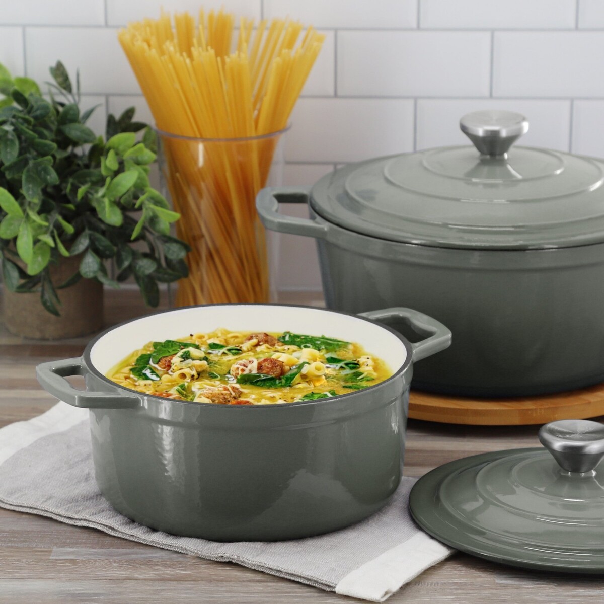 MegaChef 2.7 Quart Round Enameled Cast Iron Casserole in Gradient Gray