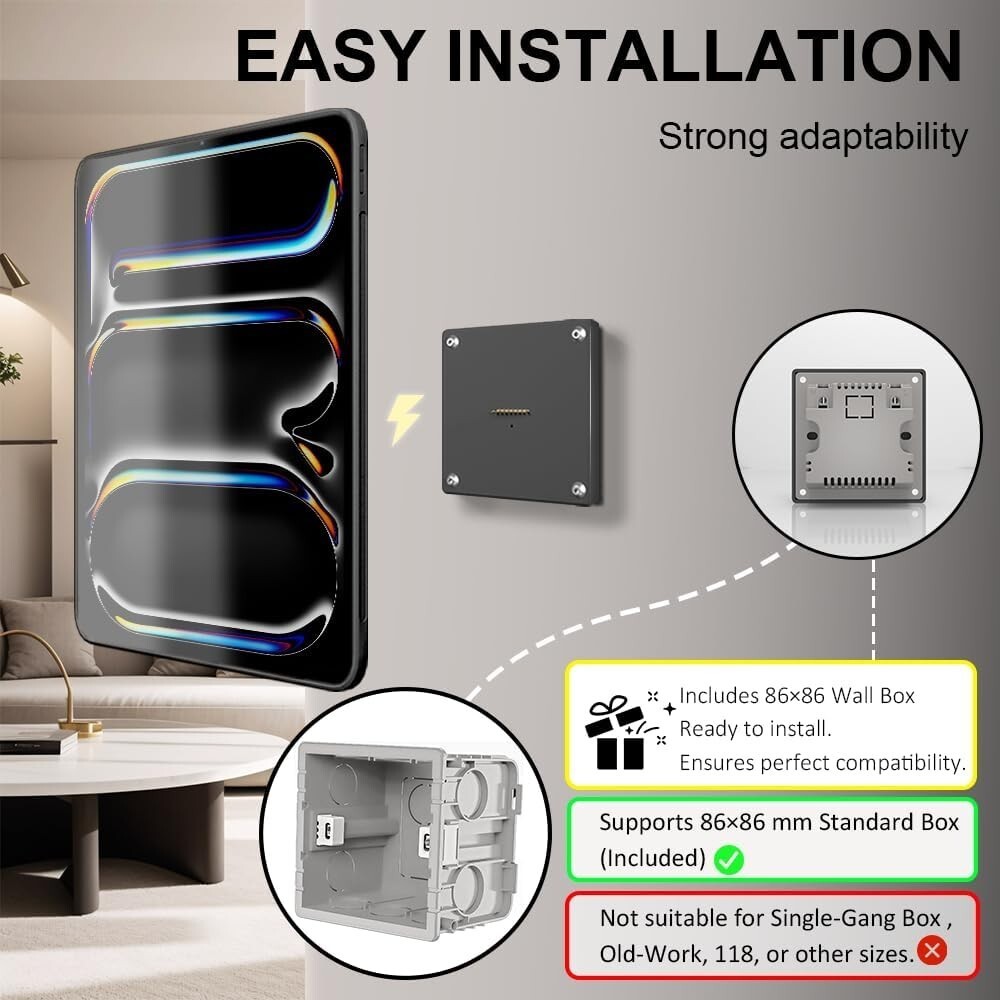 ? Secure Magnetic Wall-Mount System Built with 16 premium N52 magnets, this magnetic tablet wall mount offers a reliable and elegant hold. Serves as both a stable wall-mounted tablet charging station and a quick-release dock?ideal for smart homes, studios, or office spaces.