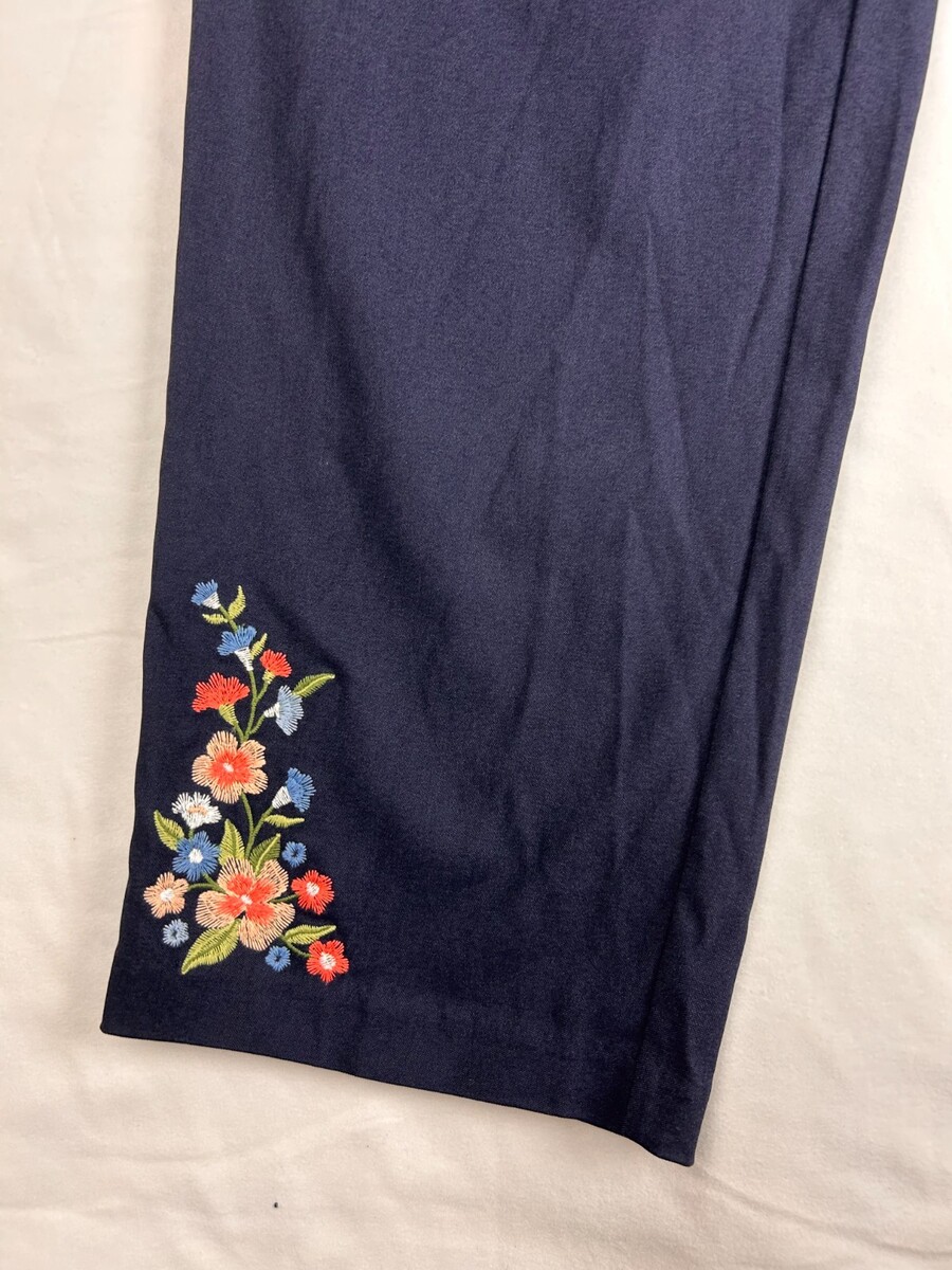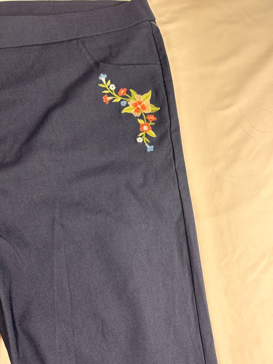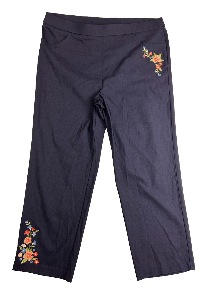 Alfred Dunner Women’s Navy Pull On Pants Size 16 Embroidered Floral Stretch