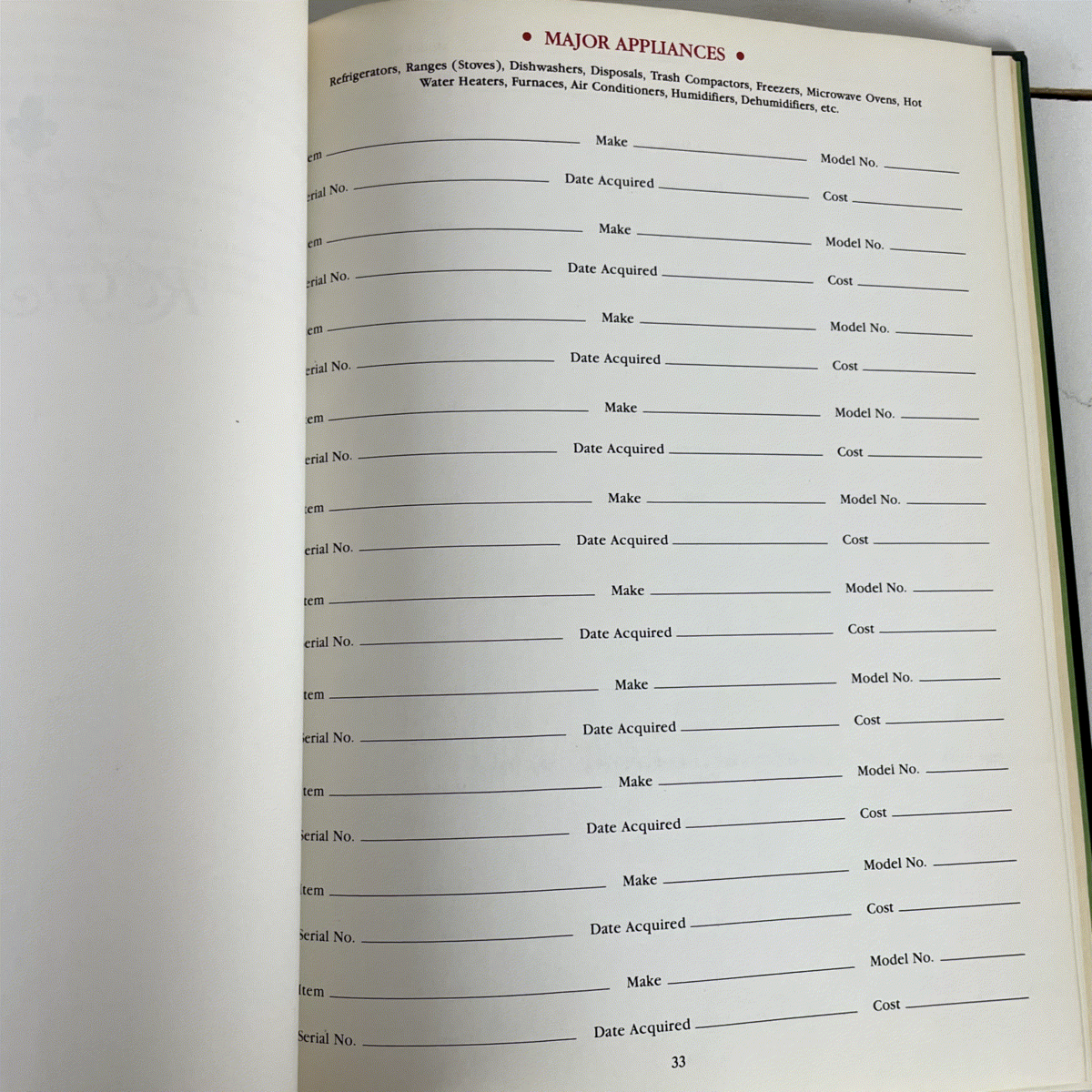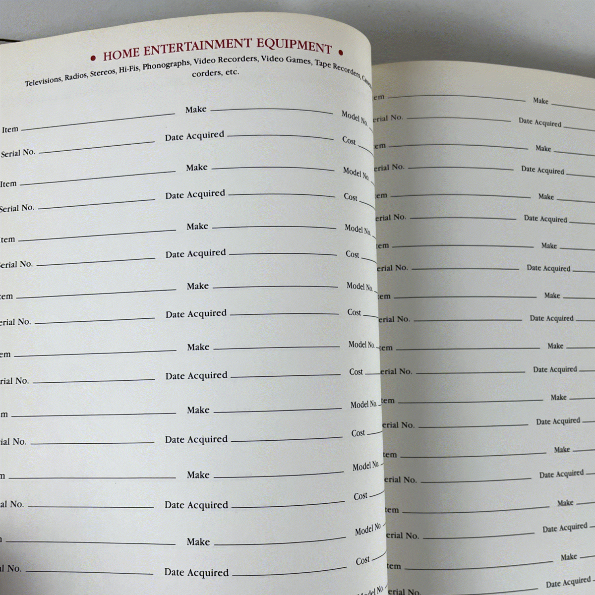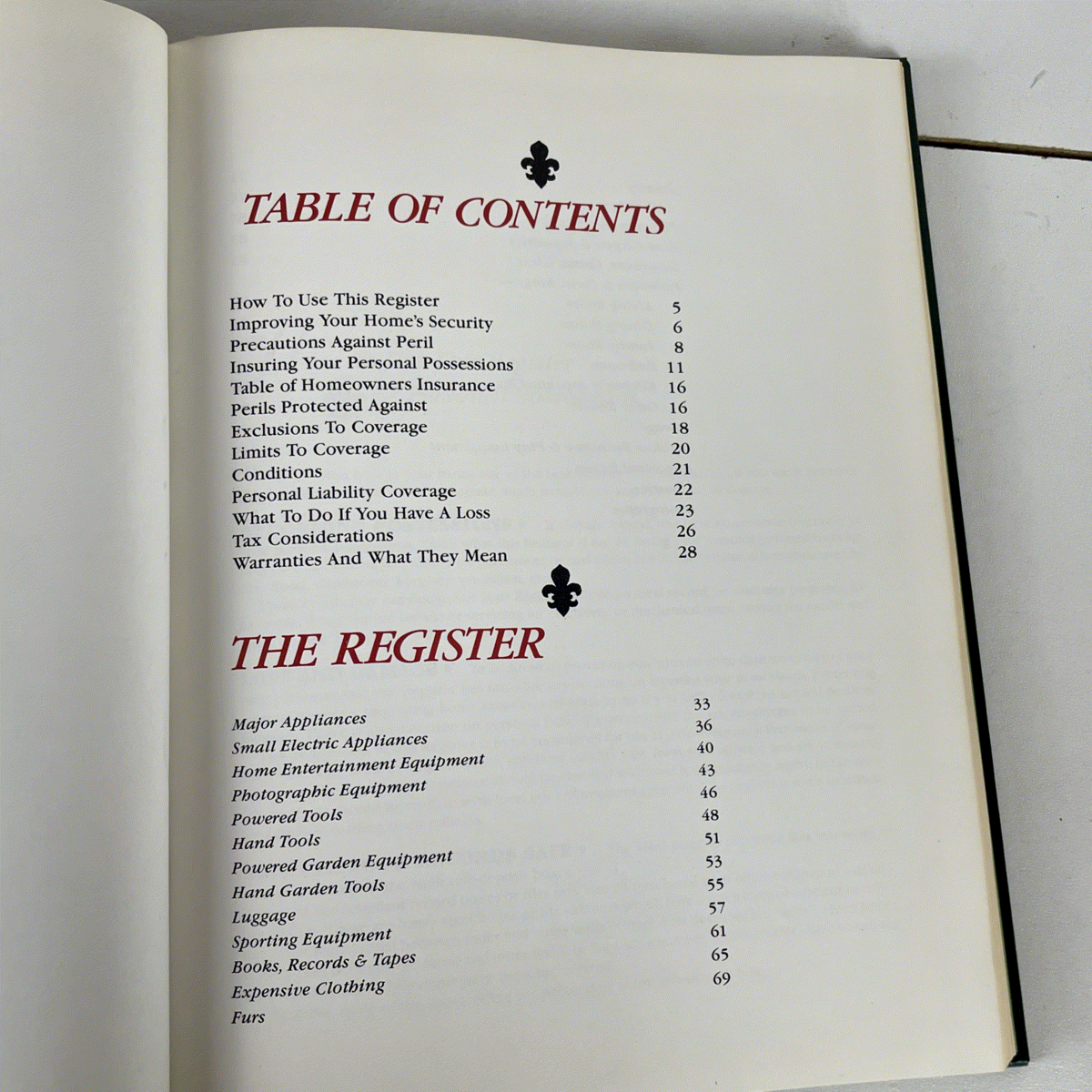 Discover the ultimate organizational tool with this vintage Household Possessions Register from 1980. Meticulously designed by Barbara Levine, this elegant book provides a comprehensive system for cataloging your valuable belongings. With dedicated sections for everything from major appliances and home entertainment equipment to sporting goods, valuable clothing, and even photographs, it's an indispensable resource for detailed home inventory management.