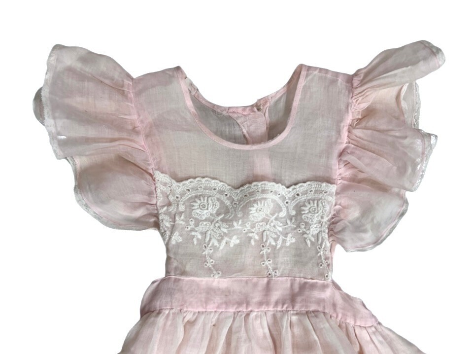 Vintage 1950s Girls Pink Organdy Pinafore Dress Sheer Size 4T