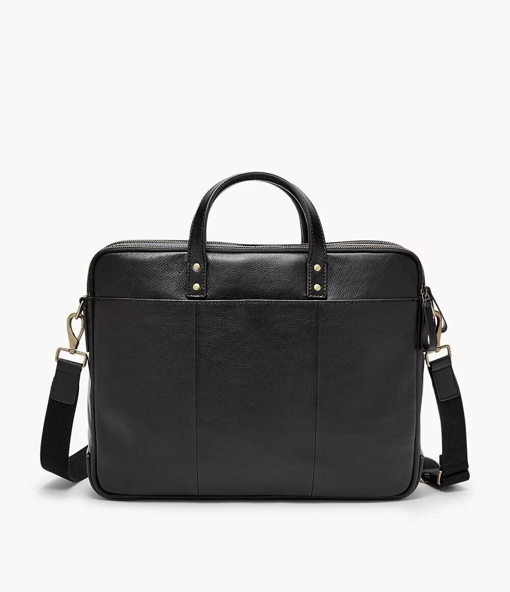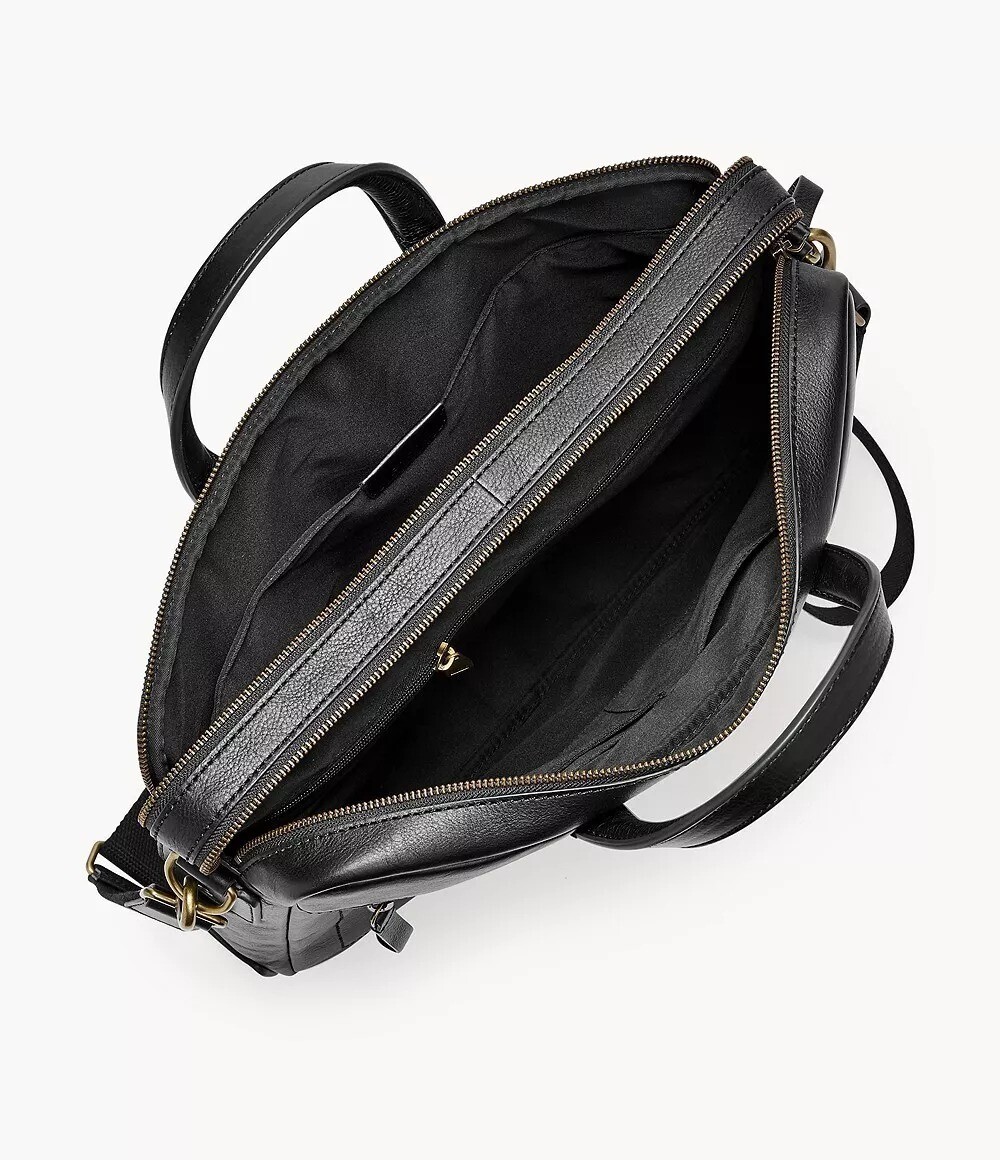 Fossil Men's Haskell Double Zip Leather Workbag Briefcase Black 16 x 3 x 12.5