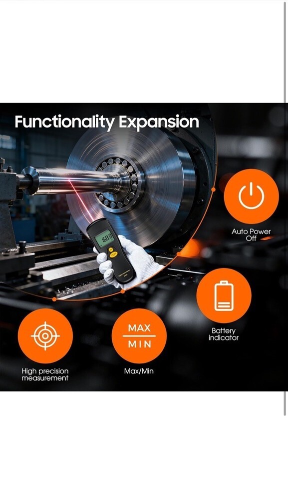 The Digital Tachometer by Smart Sensor is a non-contact RPM tachometer that can measure speeds ranging from 2.5 to 99999 RPM. It utilizes a laser beam to accurately determine the rotational speed of objects without making physical contact, making it ideal for use in various industrial applications. This digital tachometer is designed for precision and reliability in measuring the RPM of machinery or equipment, providing valuable insights for maintenance and performance optimization within a business or industrial setting.
