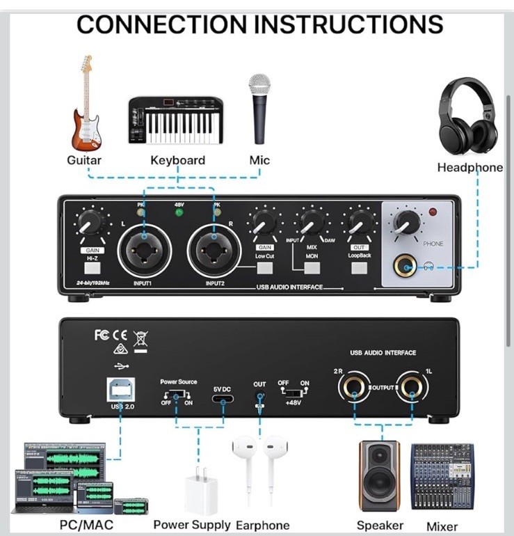 USB Audio Interface Podcast Recording 24-bit 192kHz USB-C Plug and Play NEW!
