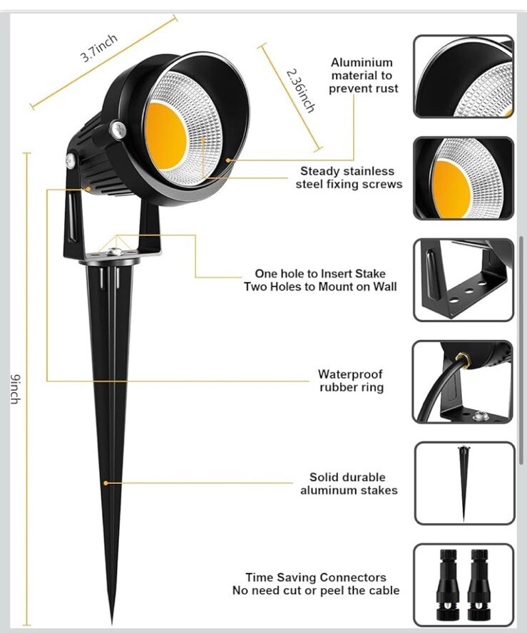 14-Pack 10W Adjustable LED Spotlights - Warm White Waterproof Landscape Lighting