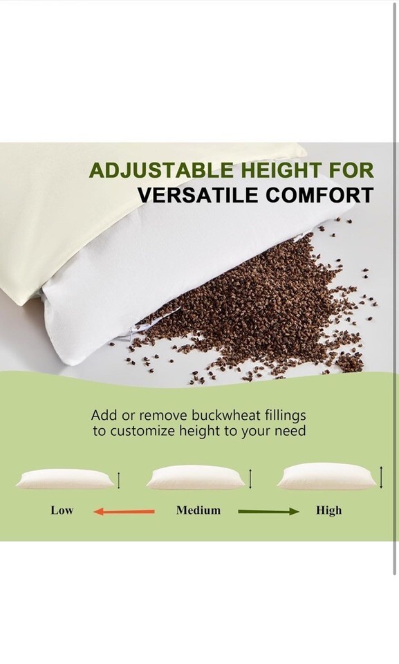 Handmade Buckwheat Pillow Neck Pain Relief – Adjustable Support – 3 Sizes