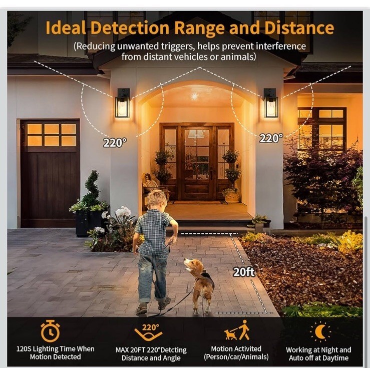2 Pack Porch Lights Outdoor Motion Sensor Wall Sconce Lights Waterproof US