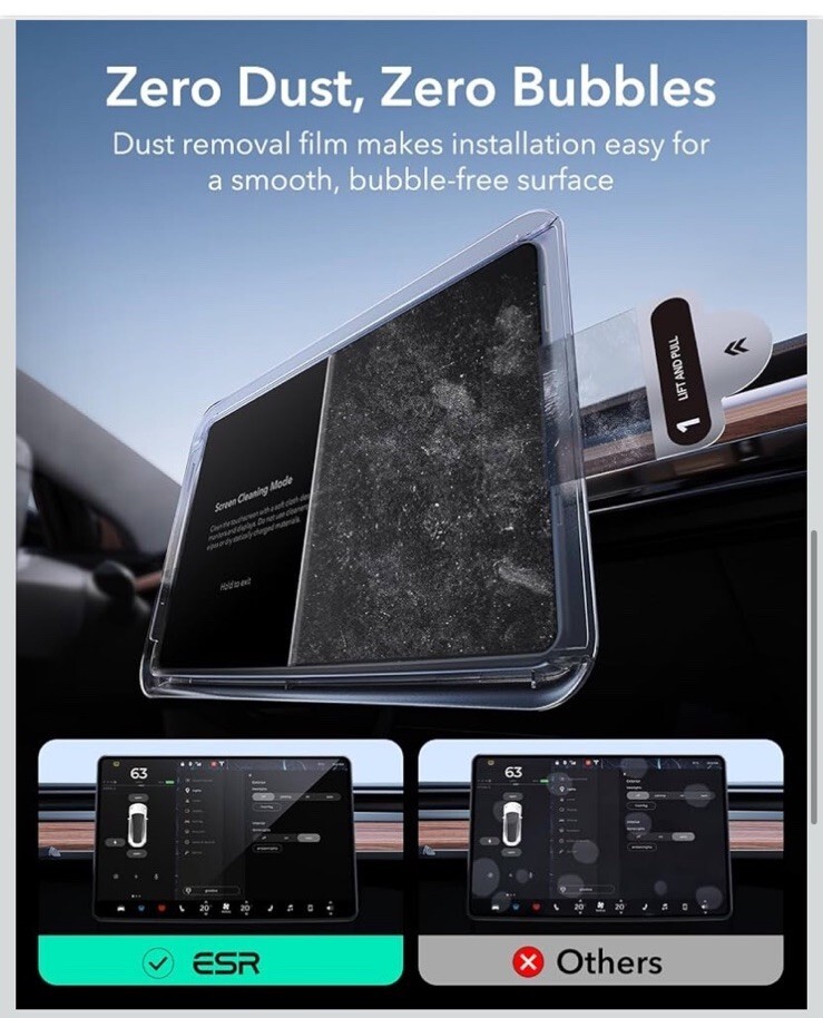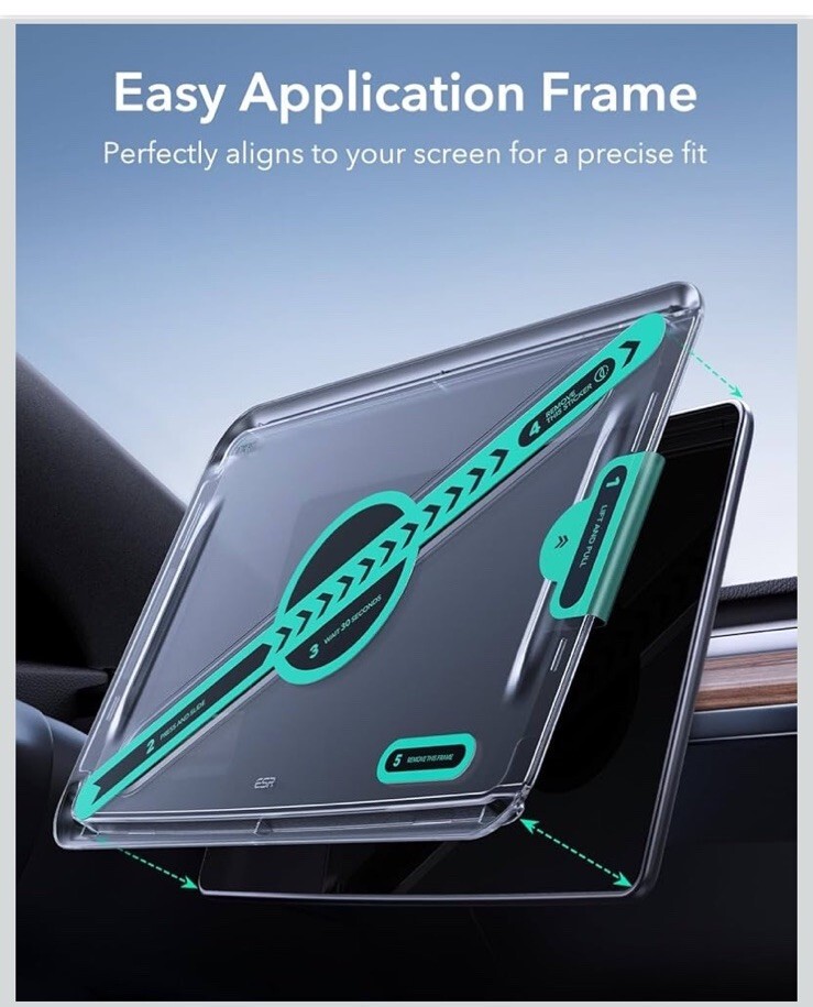 The Glass Screen Protector for Tesla Model 3/Y is a high-quality, 9H tempered glass protector specifically designed for Tesla vehicles. It features anti-glare technology, as well as being anti-shatter, anti-fingerprint, and anti-scratch. This clear protector is easy to install and comes with a protective skin included. With a manufacturer warranty of 1 year, this unit is a reliable choice to keep your Tesla's screen in pristine condition. Made by ESR in the United States, this transparent protector is a must-have accessory for Tesla Model 3 and Y owners.