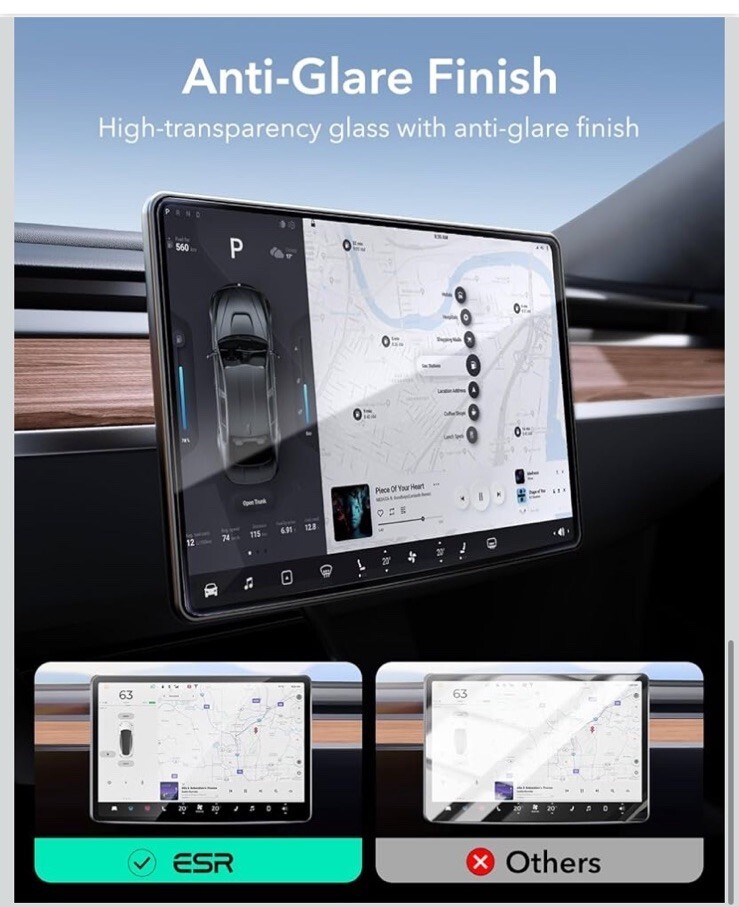 Glass Screen Protector - Anti-Glare, 9H Tempered Glass for Tesla Model 3/Y NEW!!