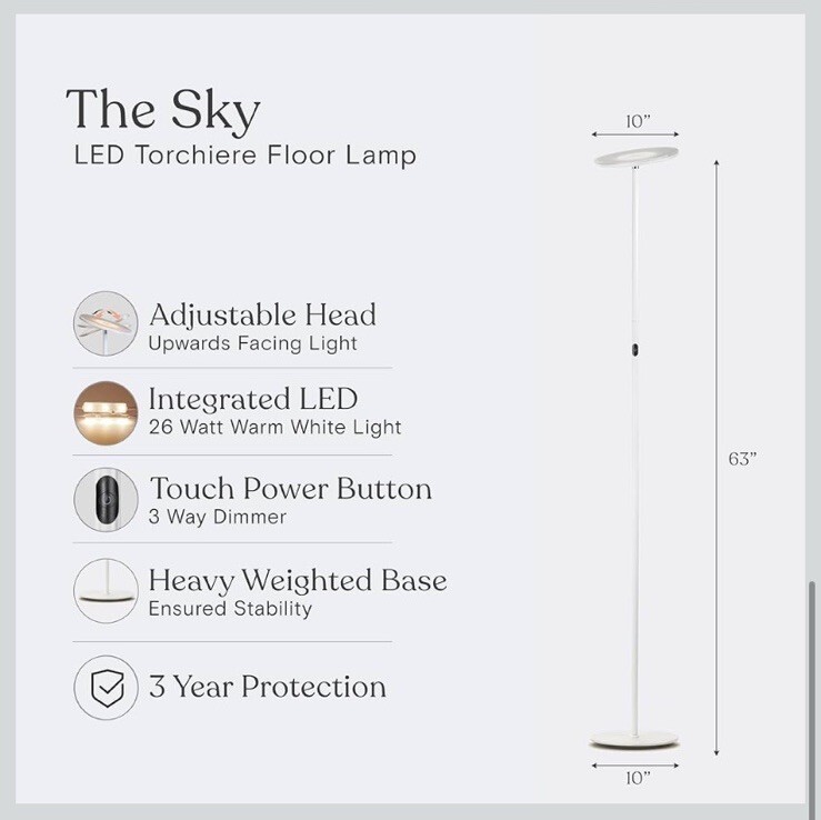 Brightech Sky LED Floor lamp, Torchiere Super Bright Floor Lamp for Living Rooms