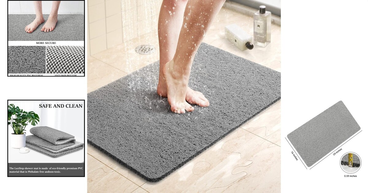 24x16 Non-Slip Bath Mat in Grey - Soft PVC with Perfect Drainage & Exfoliating