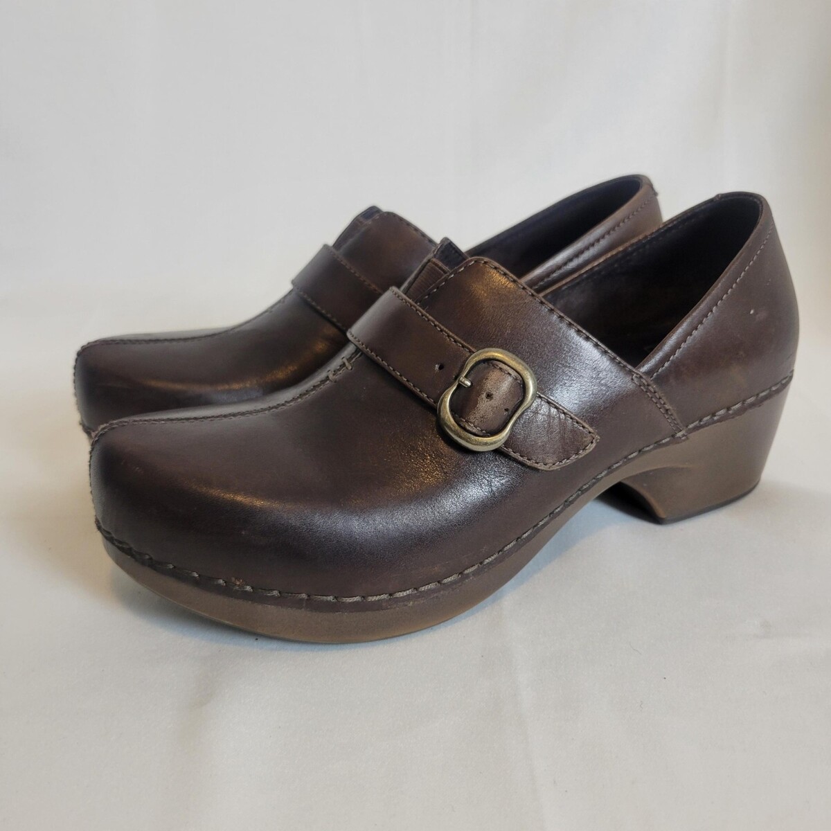 Dansko Tamara Dark Brown Leather Clogs Shoes Loafers 39 8.5 - 9 Work Comfort EUC