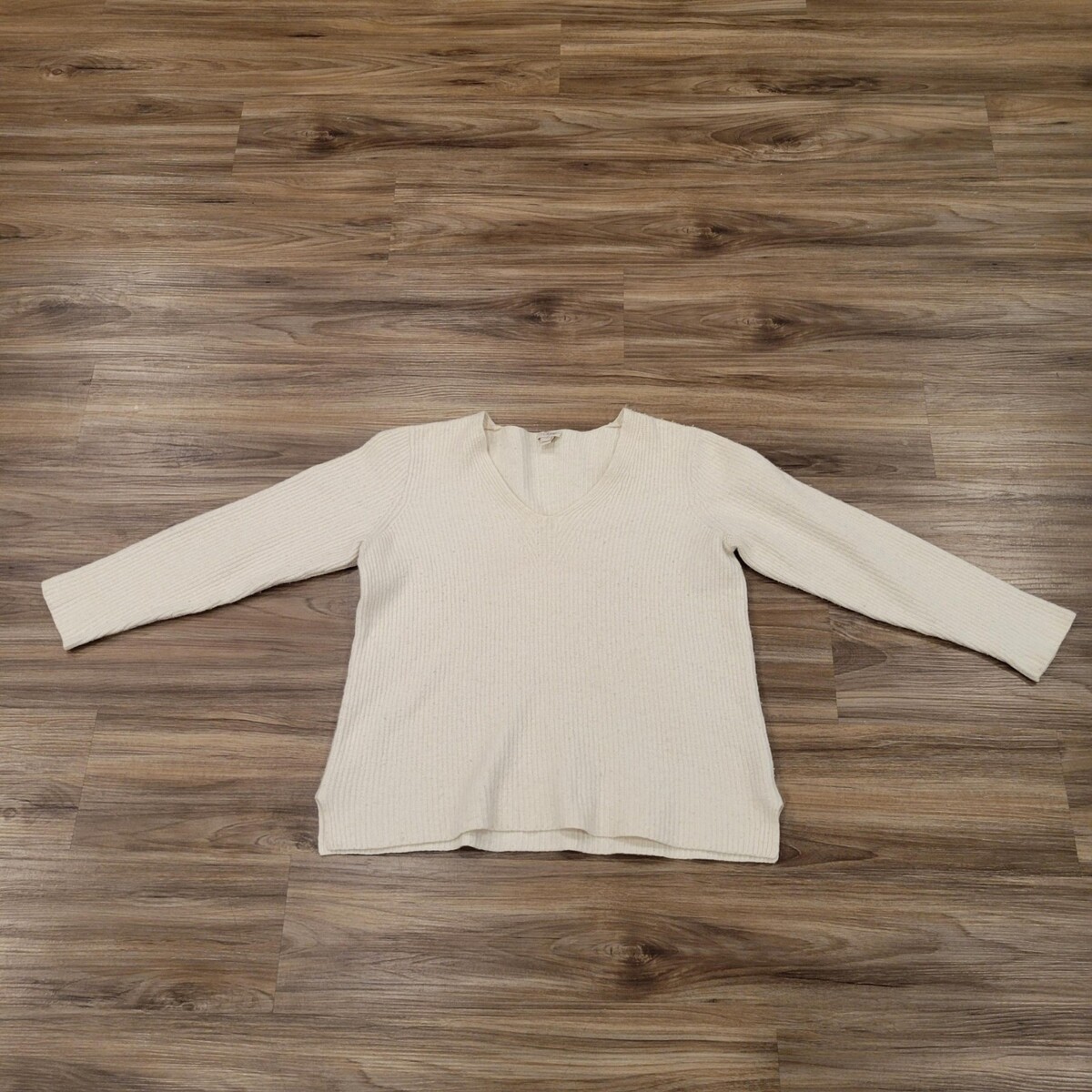 J.Crew Cream Off-White Merino Wool Cotton Blend Knit Women?s Size X-Large V-Neck
