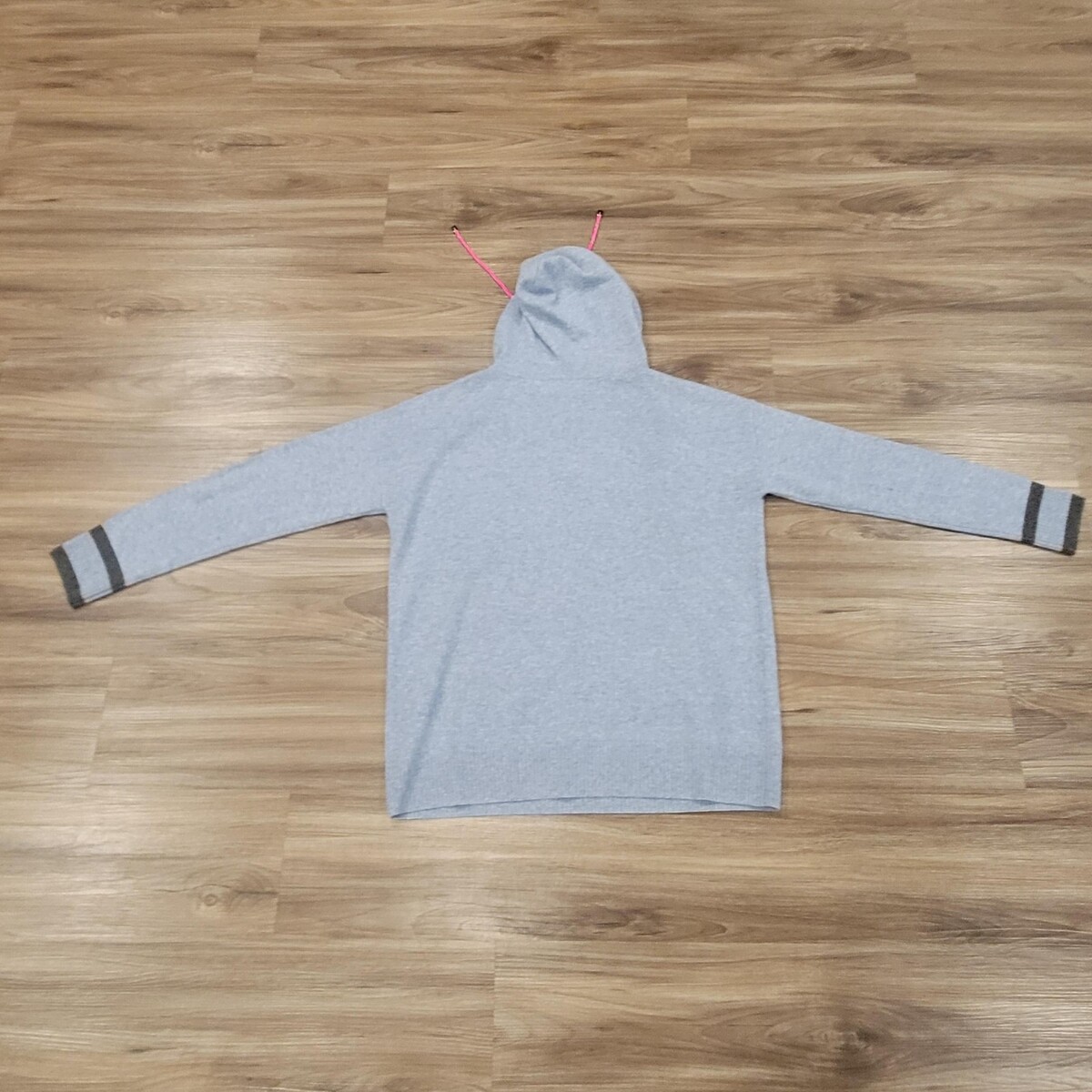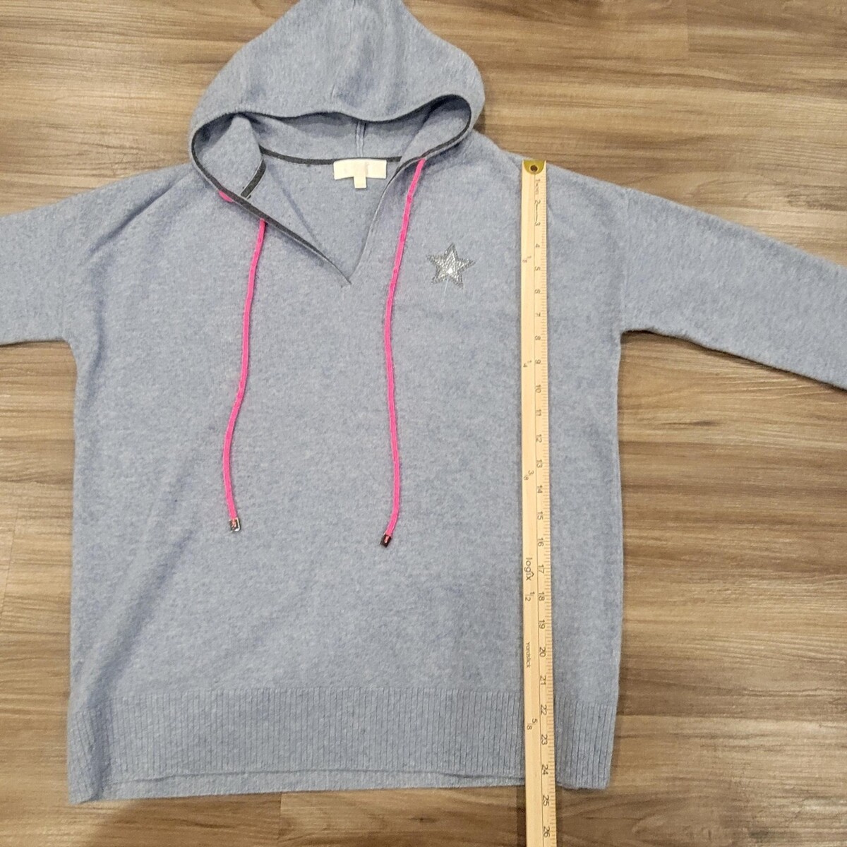 Lisa Todd Pullover Hooded 100% Cashmere Star Sweater Blue Grey Large Flawed