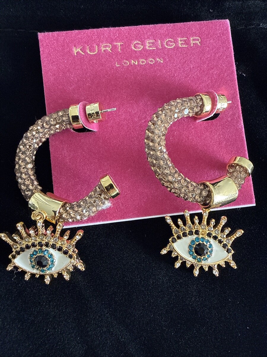 Kurt Geiger Signature Evil Eye Pendant Golden 2 Earring Set ~New~