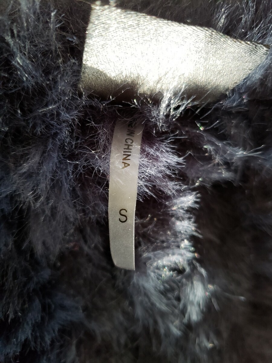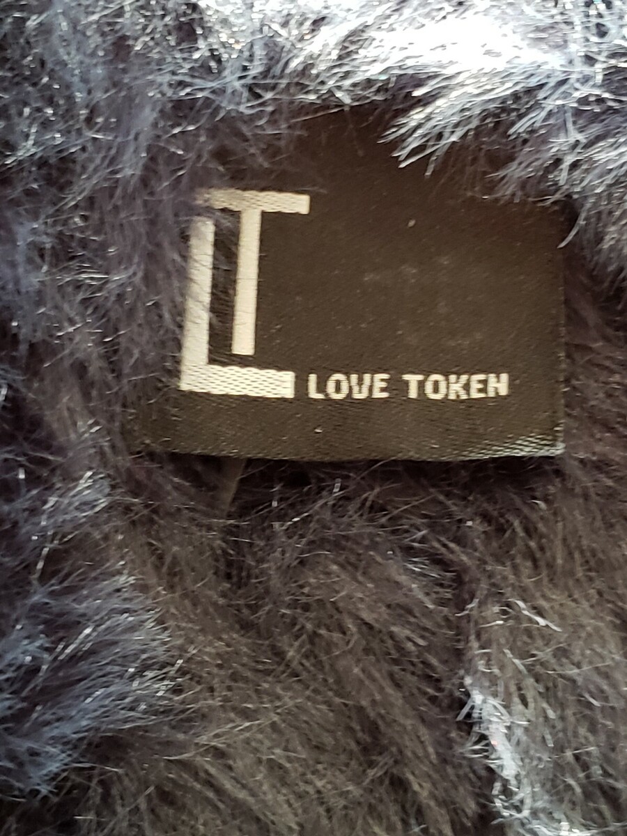 Love Token Faux Fur Vest Furry Sleeveless Jacket Indigo Blue Long Soft Wrap