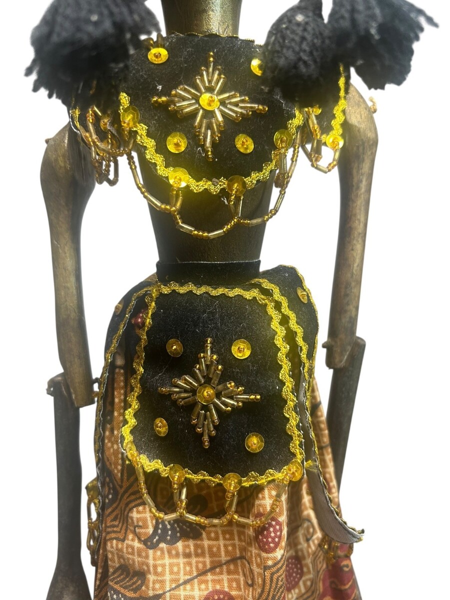 Dating to the mid-century (Circa 1960?s), this pair displays a beautiful vintage patina. The wood carving remains sharp, and the colors are vibrant. As is common with authentic vintage pieces, there is minor age-related wear to the paint and fabric, which only adds to their character and story. Additionally, the left arm on the female puppet has a crack that can be easily repaired with glue if you choose to do so. Final photos show visual display of these imperfections.