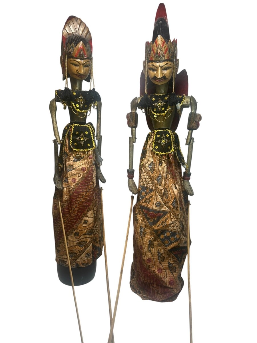 Stunning Pair of Vintage 27" Indonesian Wayang Golek Rod Puppets