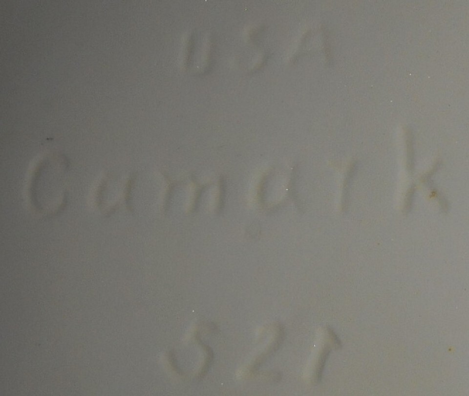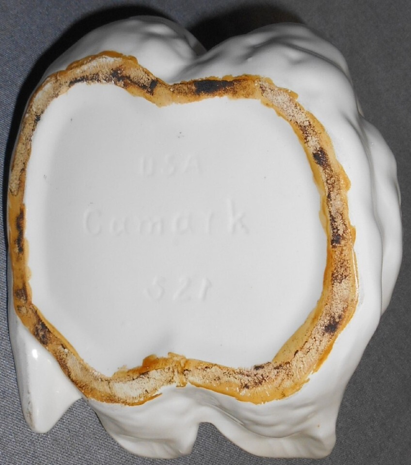 This is a great Figural Double Swan Planter that is marked on the base USA CAMARK 521. It measures approx. 7" tall x 7 1/4" long x 6" wide and it is in overall good condition with no chips but there is a 1 3/4" long hairline crack on one side of planter where wing begins.